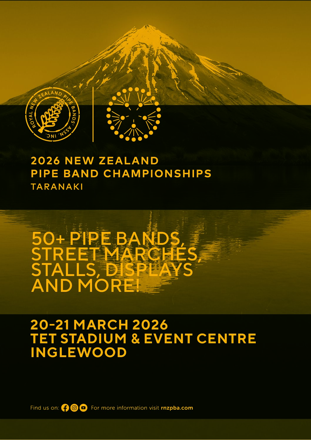 2026 NZ Pipe Band Championships + Add to Google Calendar + iCal / Outlook export Date 20 - 21 Mar 2026 Time 8:00 am - 6:00 pm Location TET Stadium, Inglewood